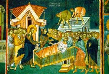 Si s-a sculat indata si, luandu-si patul, a iesit inaintea tuturor, incat erau toti uimiti si slaveau pe Dumnezeu, zicand: Asemenea lucruri n-am vazut niciodata. (Matei IX, 1 - 8. Duminica a VI-a dupa Rusalii)